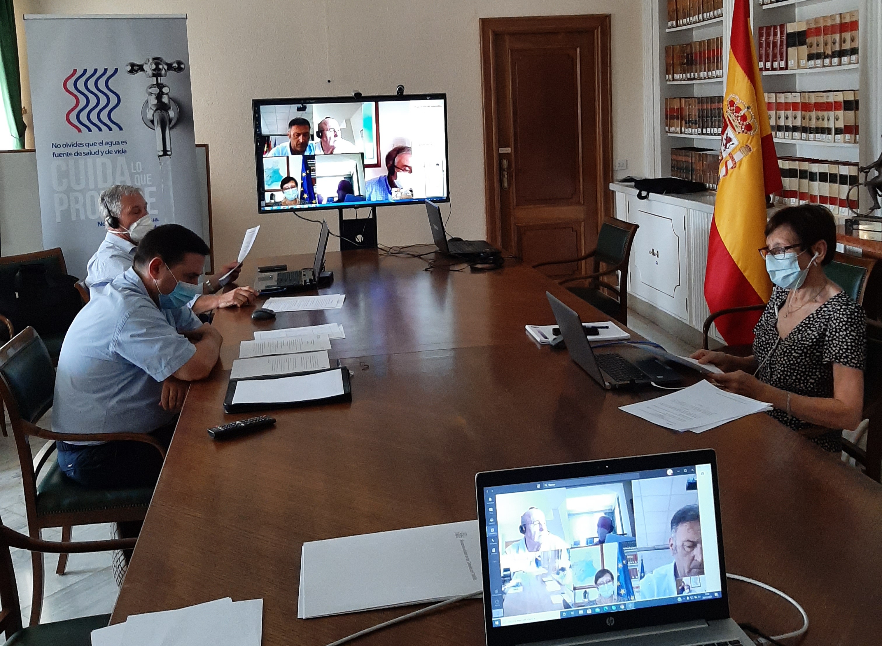 Este jueves 30 de julio ha tenido lugar la celebración del Comité Ejecutivo con carácter extraordinario de la Mancomunidad de los Canales del Taibilla, que se ha realizado de forma presencial en las oficinas centrales de este Organismo en Cartagena, si bien, dada la situación provocada por la pandemia, y en aras a una mayor garantía de seguridad, se facilitó a los componentes de dicho Comité la posibilidad de conectarse on-line y seguir la sesión a través de videoconferencia.
