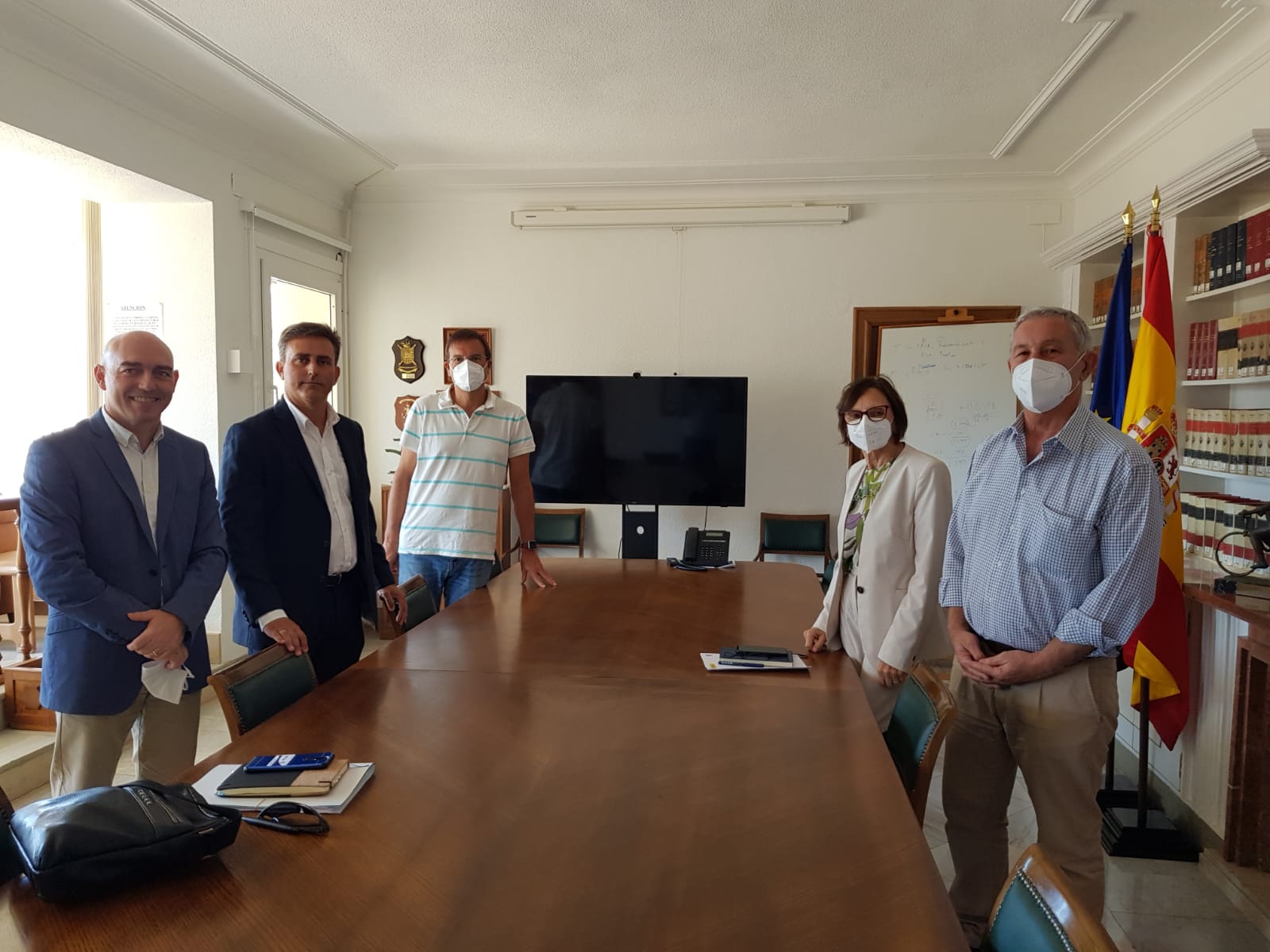 La presidenta de la Mancomunidad de los Canales del Taibilla (MCT), Francisca Baraza, acompañada del director, Carlos Conradi, han mantenido una reunión, en la sede de este Organismo, con el Decano del Colegio de Ingenieros de Caminos, Canales y Puertos, Alejandro Lázaro Badenas, y dos miembros de su Junta Rectora. En este primer encuentro se han tratado temas relacionados con la actividad de la MCT y se ha manifestado el interés de colaboración mutua en diferentes ámbitos.