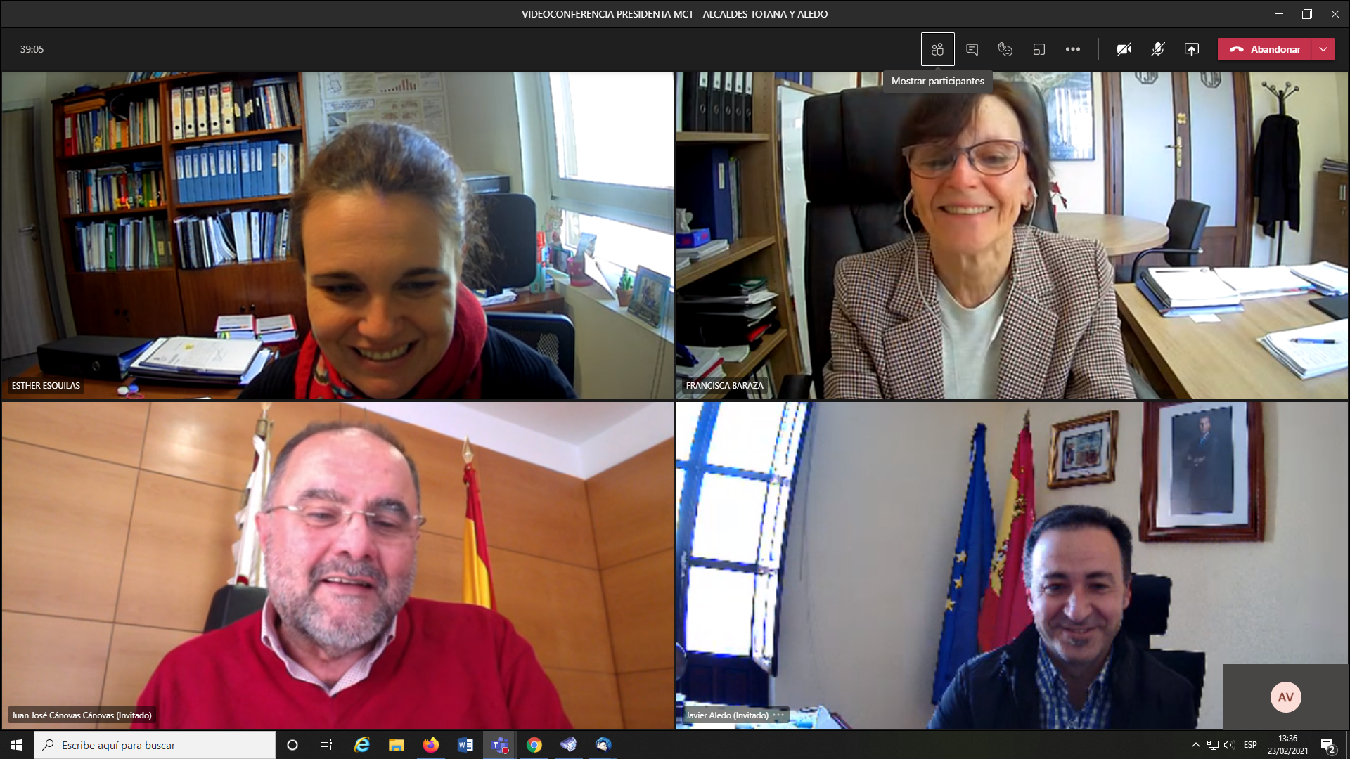 La presidenta de la Mancomunidad de los Canales del Taibilla, Francisca Baraza, junto con la jefa de Explotación, Esther Esquilas, han mantenido una reunión con los alcaldes de los ayuntamientos de Aledo y de Totana, Fco. Javier Andreo Cánovas y Juan José Cánovas Cánovas respectivamente, para tratar los problemas de abastecimiento a la población de Aledo y al conjunto de La Santa que actualmente dispone de recursos muy limitados.