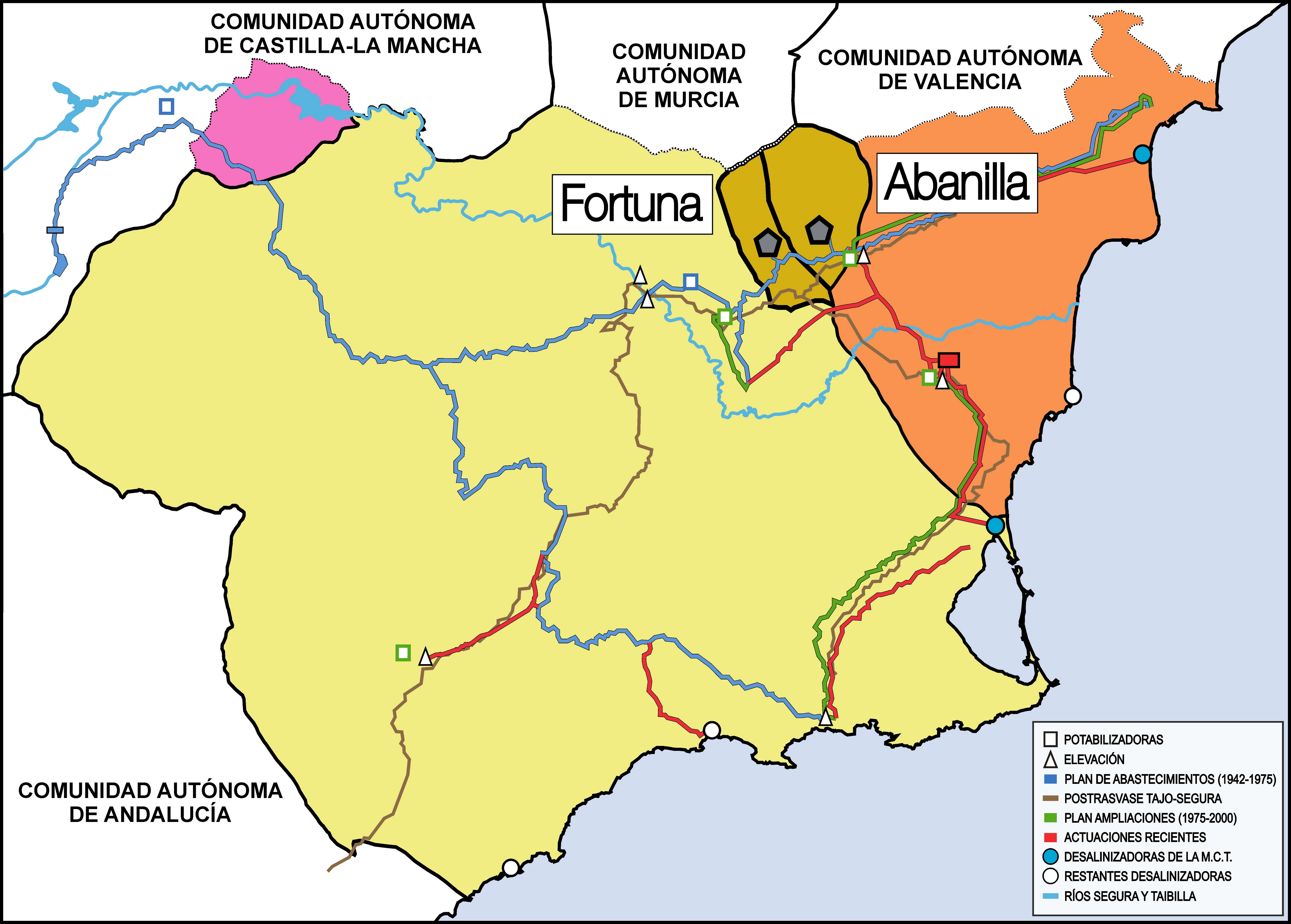 Fortuna y Abanilla son abastecidos a mediados de los años sesenta mediante aguas bombeadas desde el último tramo del Canal del Segura.