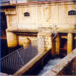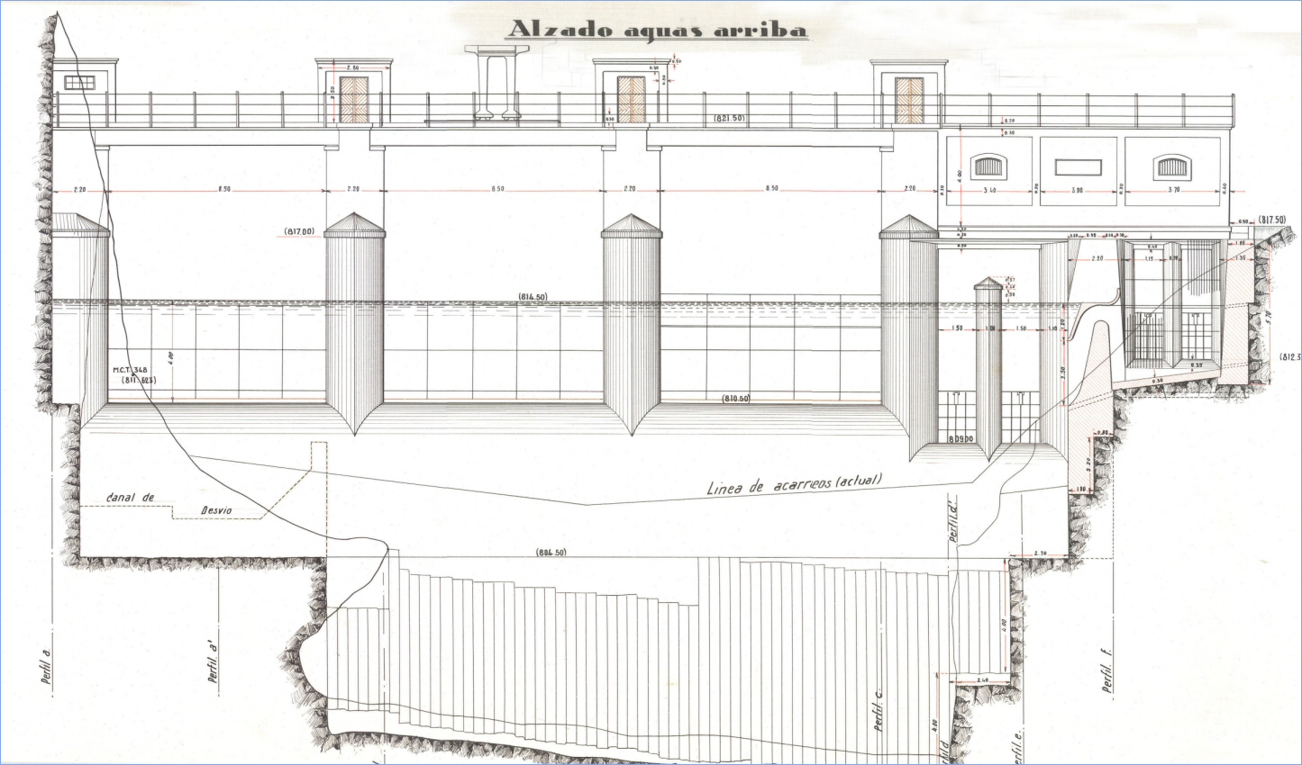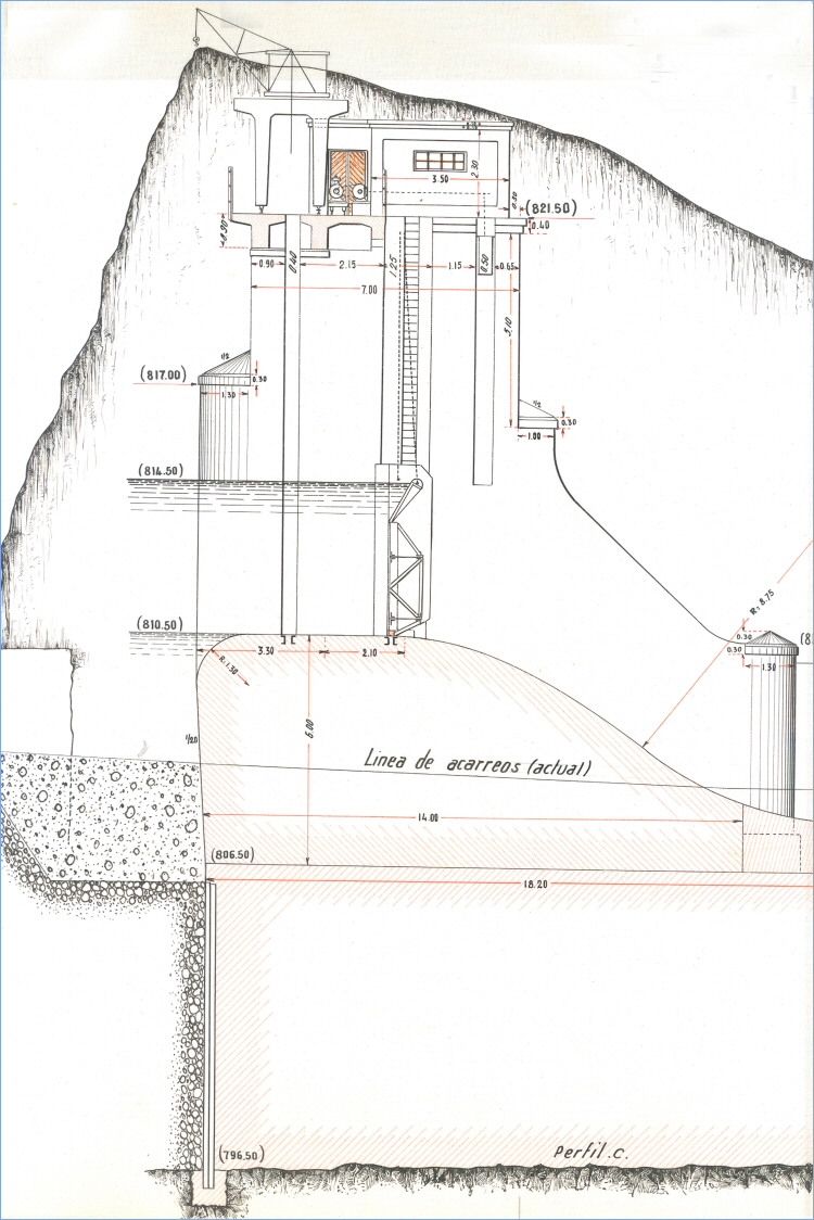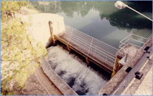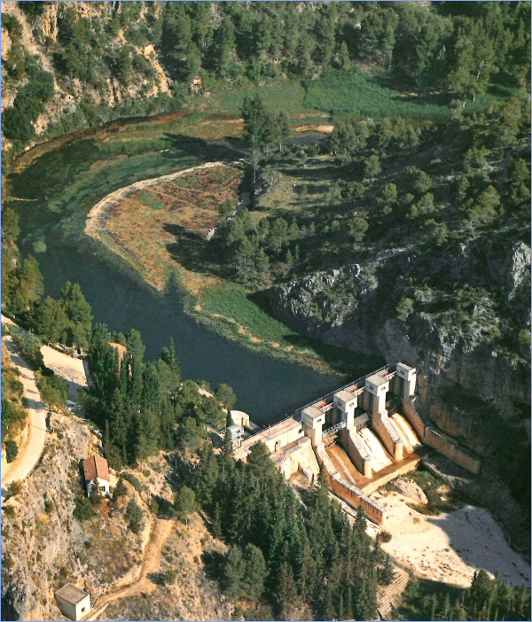 Azud aguas abajo del Estrecho del Aire, en el río Taibilla:actúa como dispositivo de entrada, por aliviadero, al origen del Canal Alto del Taibilla. Mediante sus compuertas móviles regula la altura de lámina vertiente y el consiguiente caudal en el origen del canal. Aguas abajo del mismo son ya muy escasos los afloramientos existentes. El aprovechamiento del río íntegramente para abastecimientos es pleno.