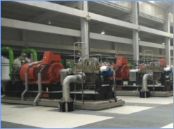 Asociado a cada uno de los bastidores se ha instalado un grupo compuesto por turbina, motor y bomba, para someter el agua del mar a la elevada presión (70 atmósferas) precisa para realizar el fenómeno artificial de la ósmosis inversa, consistente en separar agua dulce del mar a través de una membrana semipermeable. Mediante la turbina se recupera la energía contenida en forma de presión (casi las 70 atmósferas) en el agua de rechazo (salmuera) a su salida de las membranas.