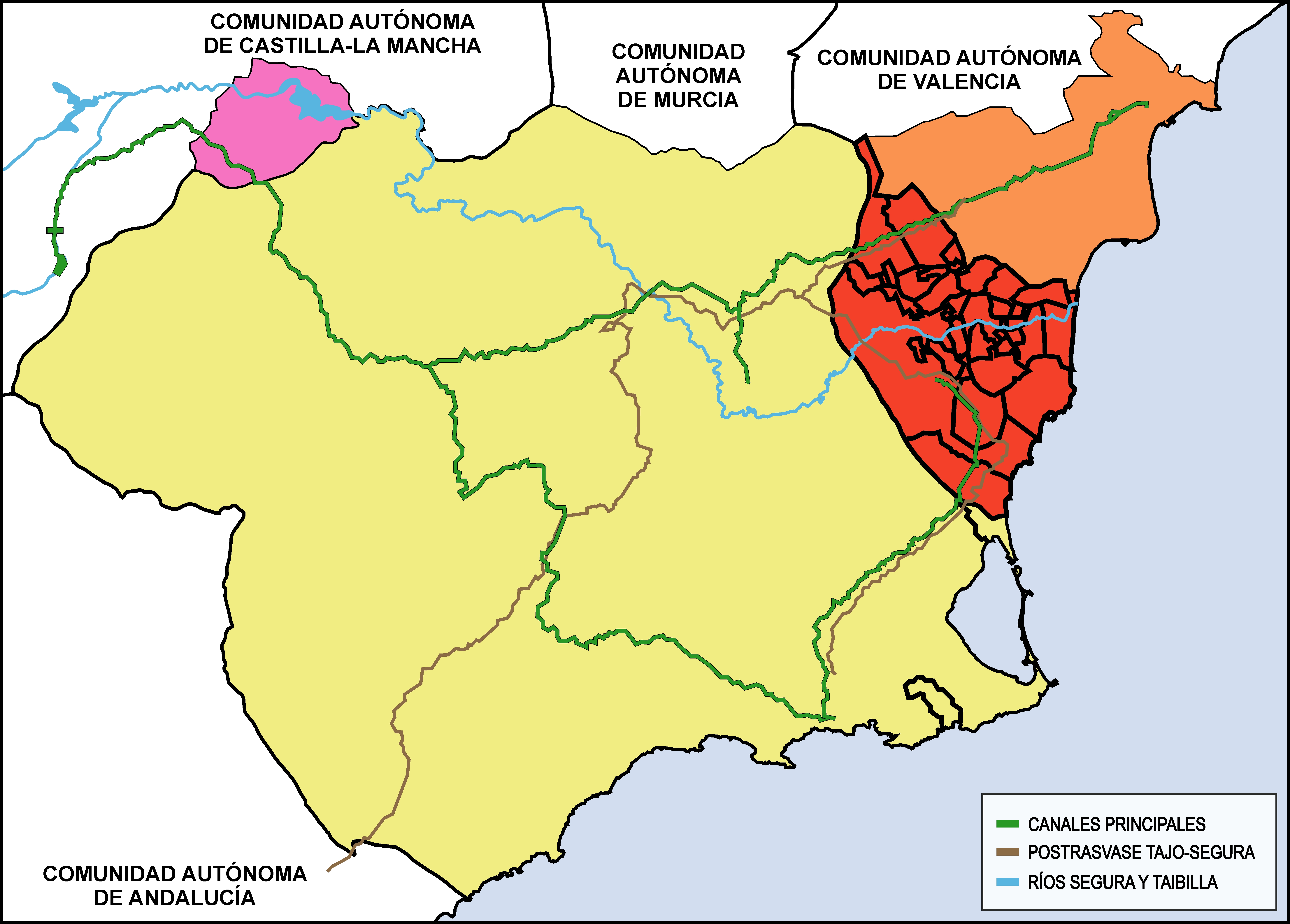 Los ramales de Orihuela-Torrevieja y Albatera-Catral-Dolores, derivados del Canal de Alicante, posibilitan el abastecimiento, a partir de la segunda mitad de los sesenta, de los quince municipios inicialmente integrados en la Mancomunidad. El Plan de Ampliación de los Abastecimientos para distribuir las aguas del Trasvase Tajo-Segura, con la construcción de las elevaciones y potabilizadoras de Torrealta y La Pedrera y los Nuevos Canales de Alicante y Cartagena, se encargó de su redotación y del suministro a partir de 1979 a los restantes municipios.